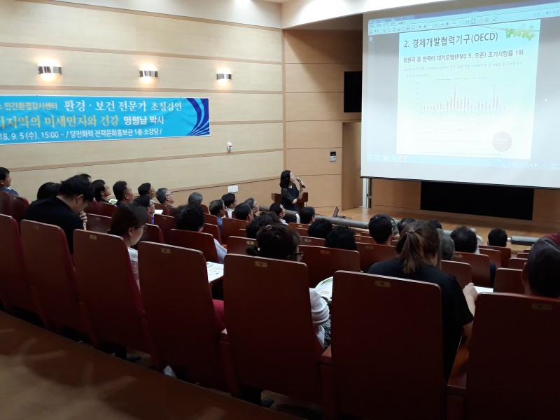 ◇ “우리지역의 미세먼지와 건강”을 주제로 대기오염물질(미세먼지)의 발생과정, 우리지역(충남도, 당진시) 미세먼지 배출현황, 미세먼지와 건강관련 주요 이슈 등 참석자들과 공감하고 소통하는 초청강연 개최.